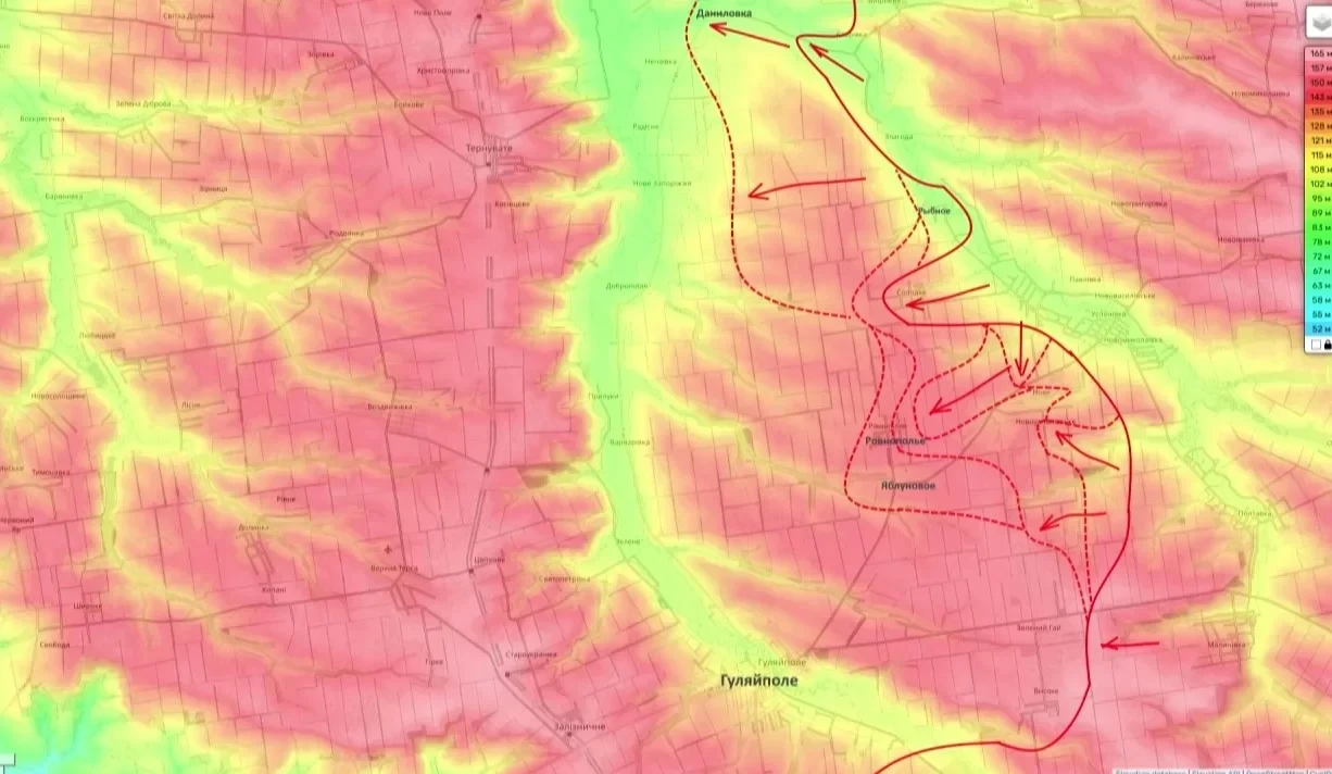 Кроме того, севернее, российские части развивают успех, практически полностью взяв под контроль Орестополь (вероятно, имеется в виду Старомлыновка или схожий н.п.). Переправившись через реку Волчья, войска, по мнению блогера, попытаются завязать бои за Великую Михайловку и прощупать оборону в сторону Александровки, которая является предместьем Покровска (бывший райцентр Днепропетровской области).