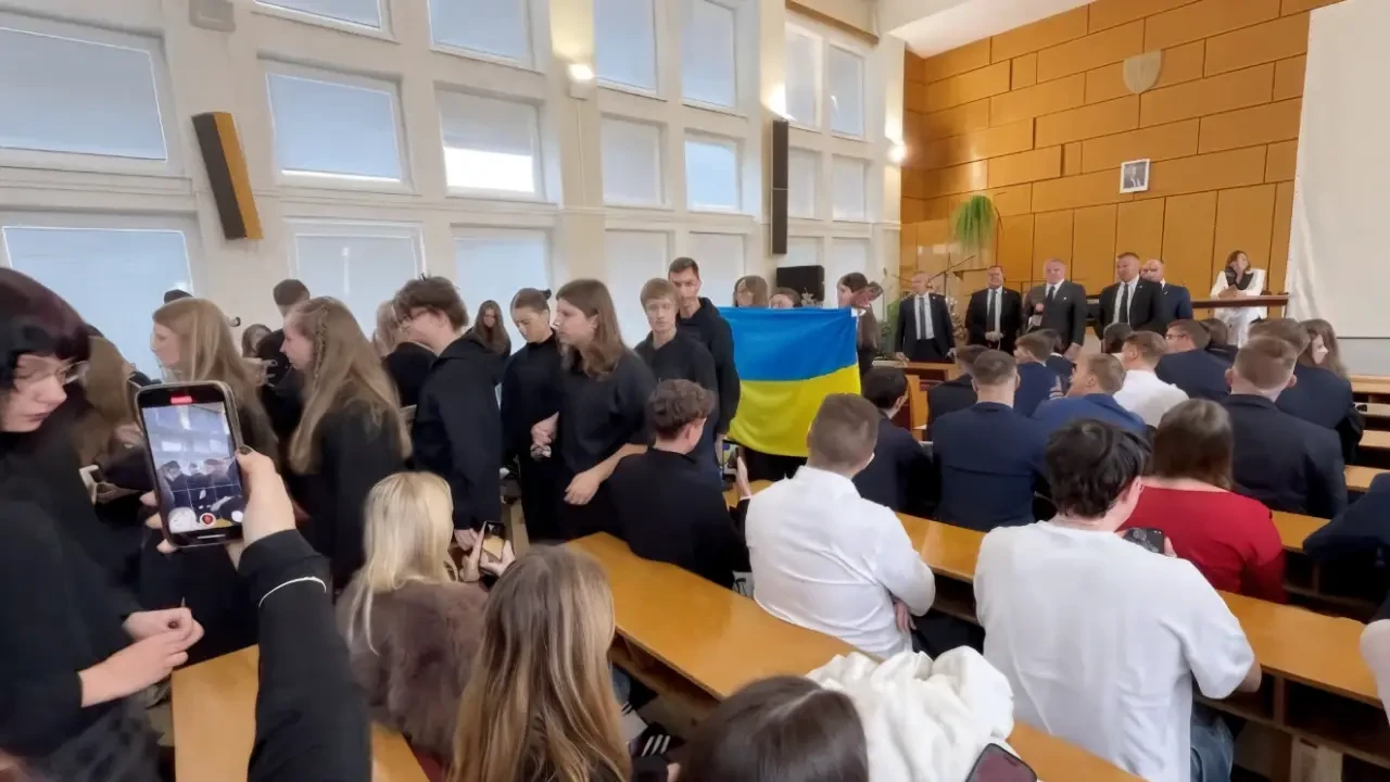 Премьер-министр Словакии Роберт Фицо приехал в Попрад поговорить со школьниками и студентами – вроде бы обычная встреча, но атмосфера с самого начала была далека от спокойной. Несколько студентов пришли в чёрных футболках, показывая, что они поддерживают Украину и не согласны с курсом правительства.