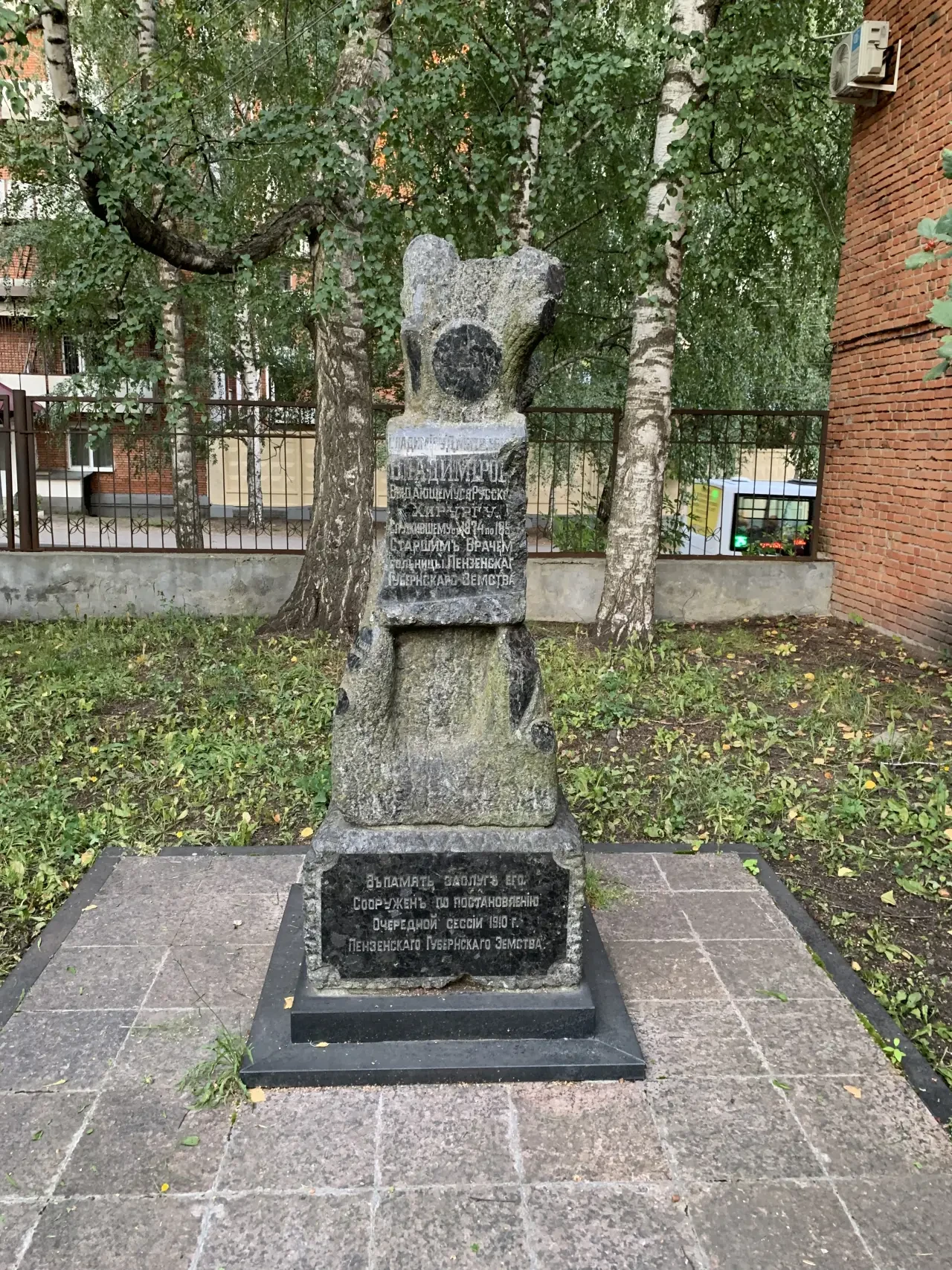 А вот это еще один памятник рядом с домом-музеем Н. Н. Бурденко. Какому-то земскому врачу, который работал в этой же клинике и был похоронен на ее территории. Но вот кто это был, я так и не узнал…