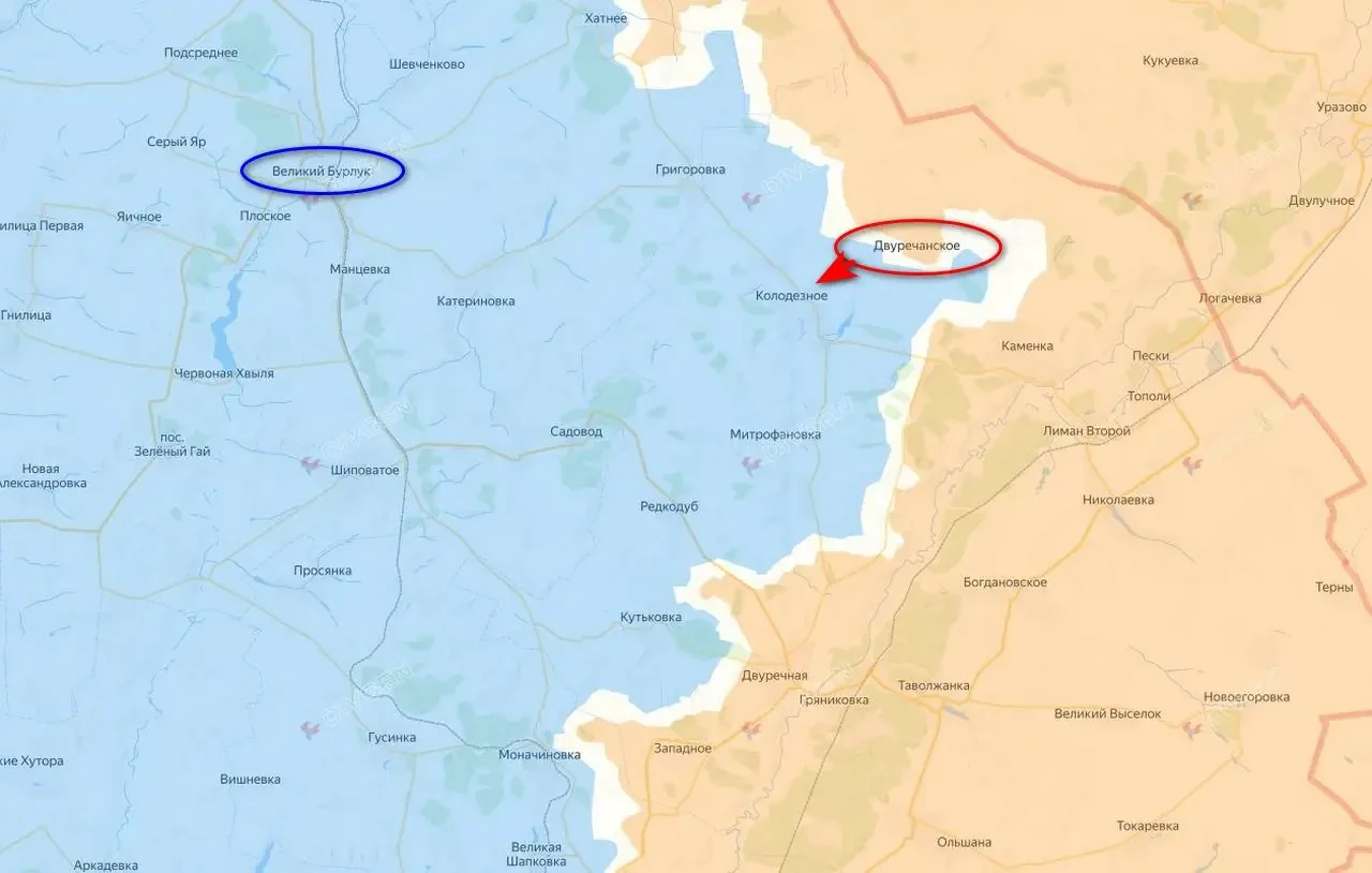 Великобурлукское направление продолжает потихоньку «трещать», вслед за Бологовкой и Отрадным штурмовые подразделения группировки «Север» освободили и Двуречанское. Как сообщает военное ведомство, село зачищали бойцы из состава 9-го мотострелкового полка 18-й мотострелковой дивизии 11-го армейского корпуса Ленинградского военного округа.