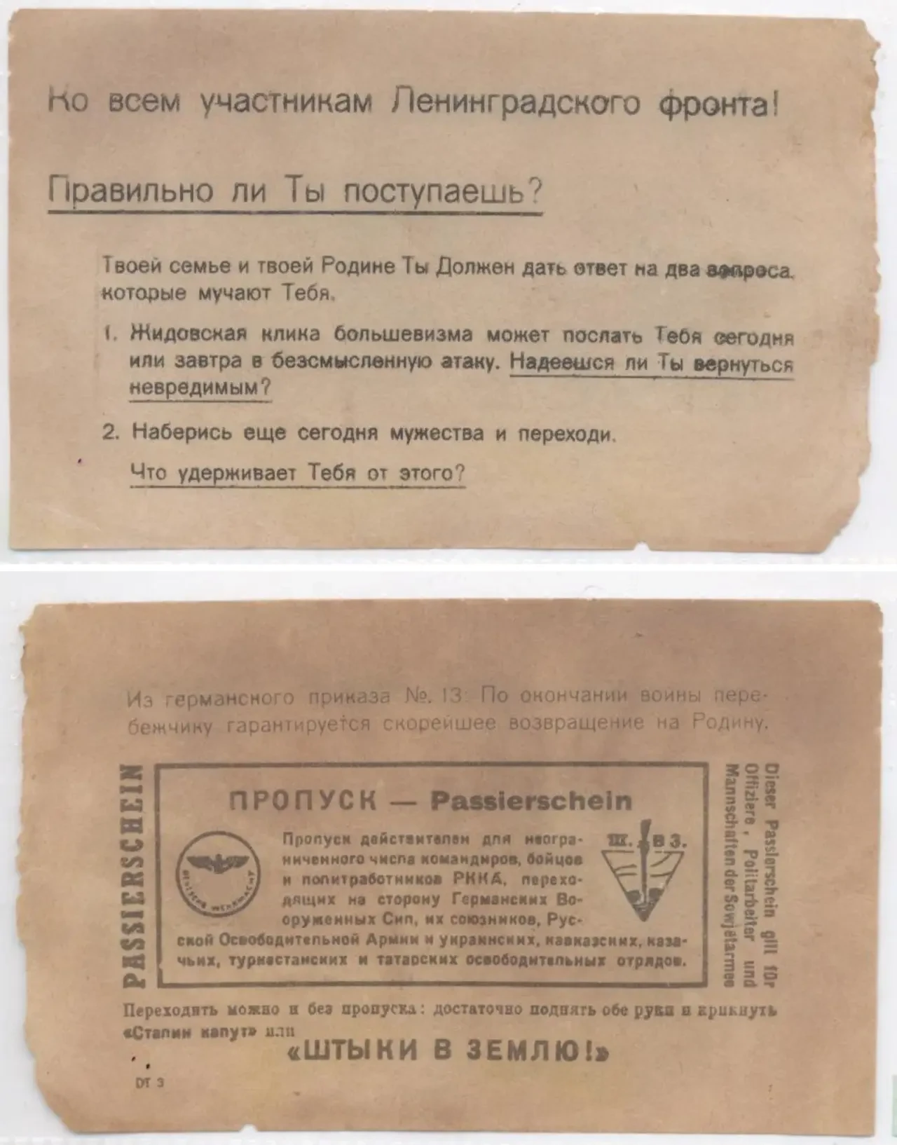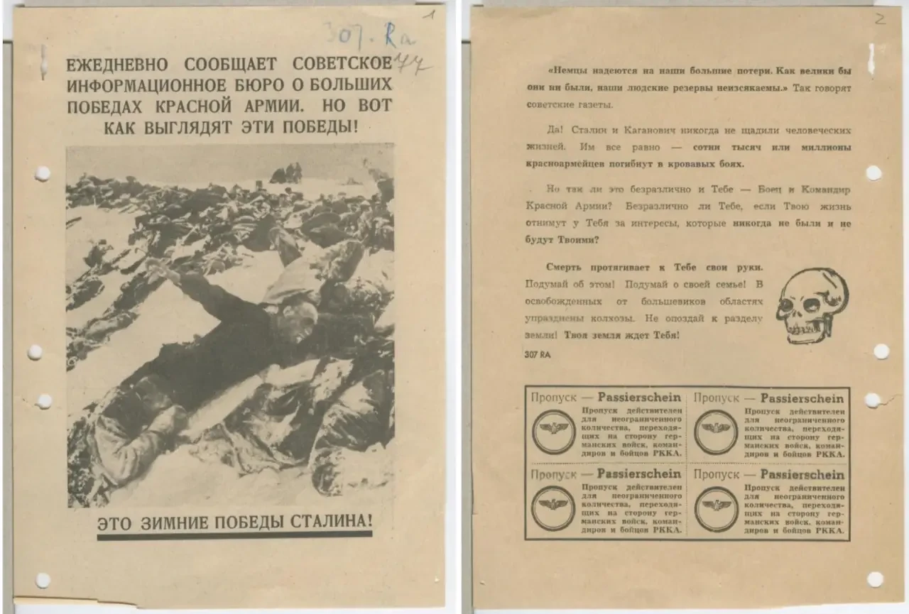 После таких заявлений напрашивалась необходимость дать со своей стороны некую «правдивую» информацию для советских солдат. Для этого периодически выпускались такие листовки, освещающие события в выгодном для немцев свете, или же вообще рассказывающие о событиях, которых не было.