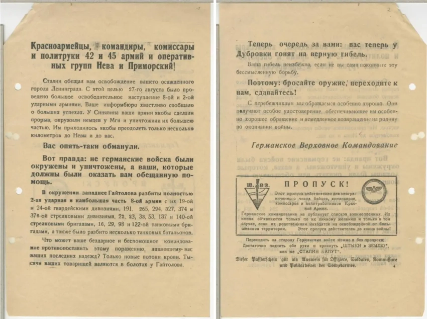 Интересная листовка, в которой советских солдат называют «обречённые на смерть»