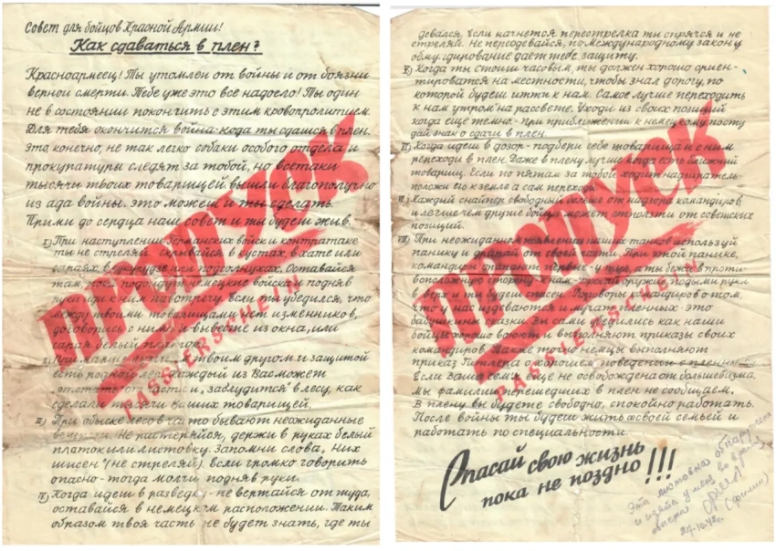 Сдача в плен как основная тема немецкой агитации для Красной Армии