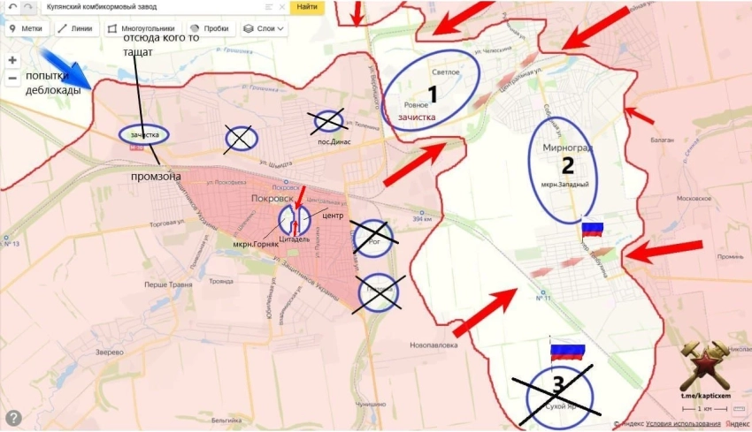 Южная часть Родинского перешла под контроль ВС РФ. Этот участок имеет стратегическое значение, поскольку обеспечивает выход на направление к Мирнограду и создаёт условия для расширения плацдарма в городской черте.
