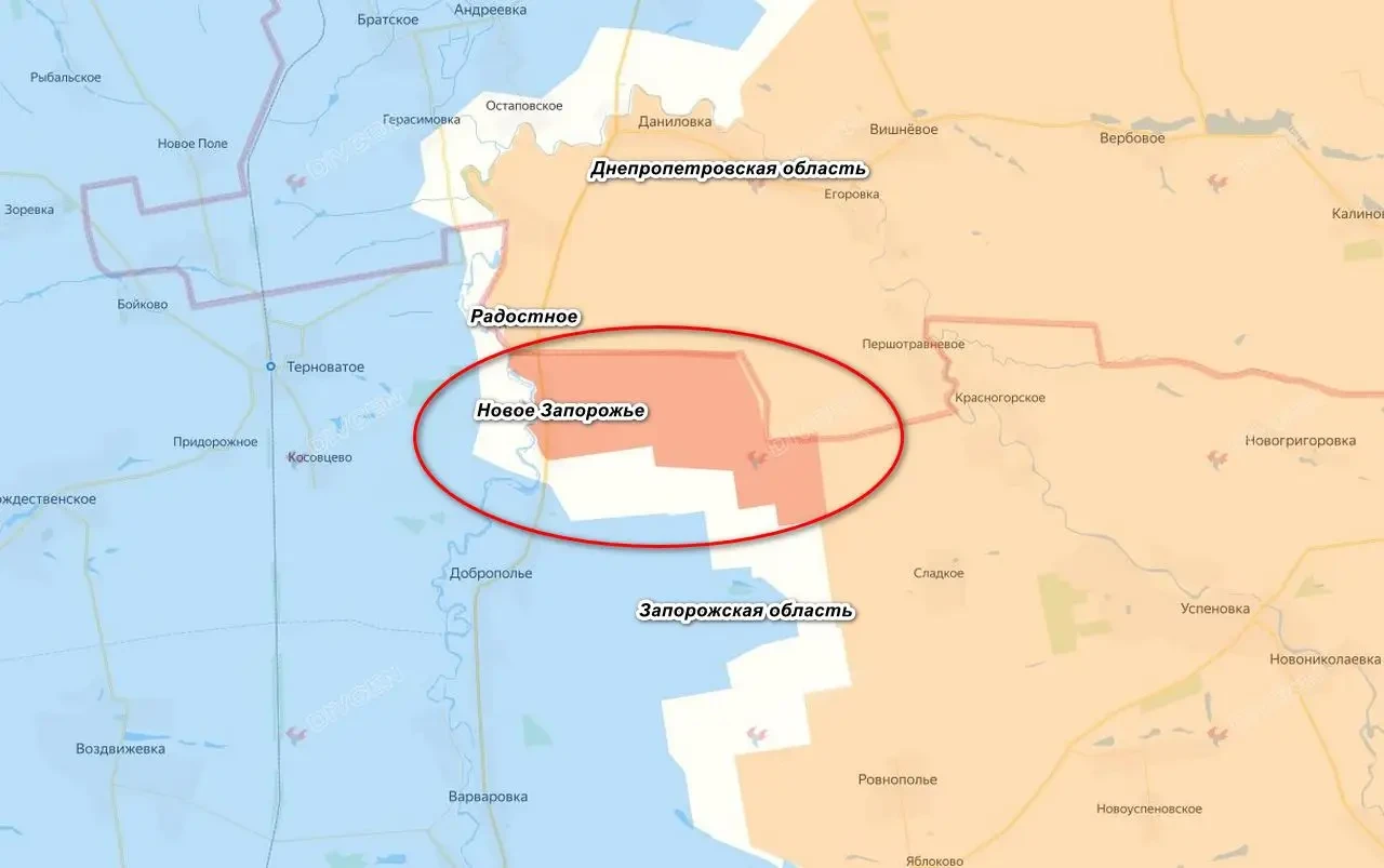 Штурмовые подразделения группировки «Восток» продолжают двигаться по правому берегу реки Гайчур, по которой ВСУ пытаются выстроить свою новую линию обороны. Село Новое Запорожье расположено рядом с селом Радостное, освобожденным накануне, но только уже в Запорожской области.