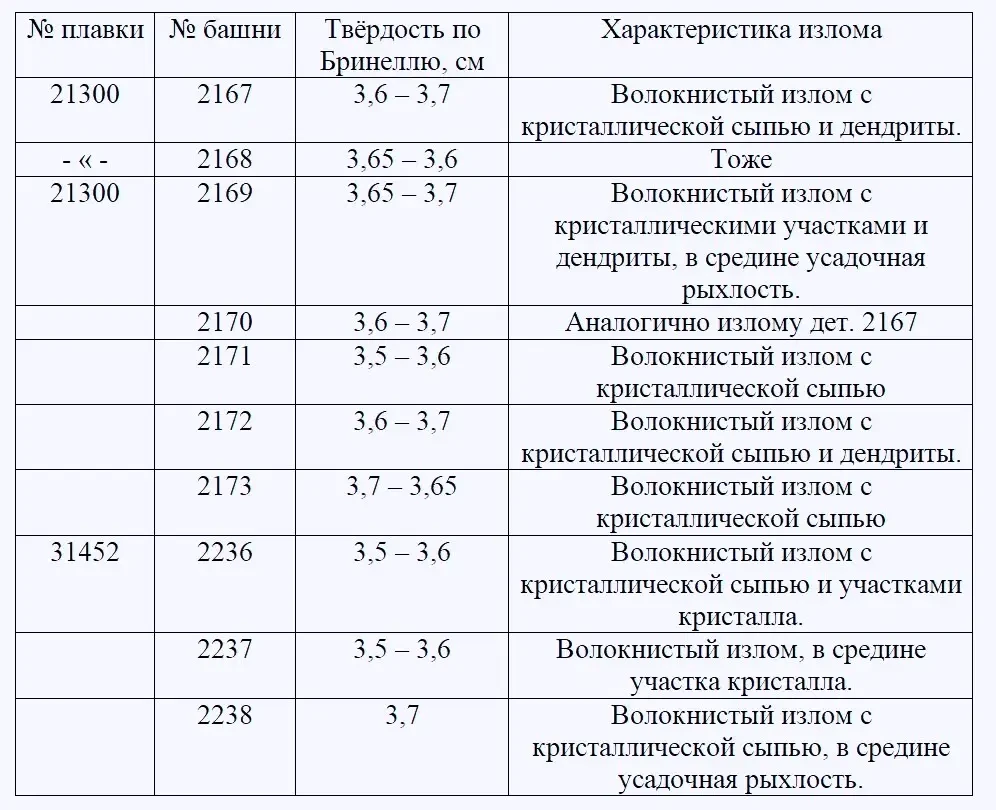 Одна башня № 2236, пл. № 31452, подвергалась двойной закалке, т. к. в производстве разрешалось обрабатывать башни по двум режимам: