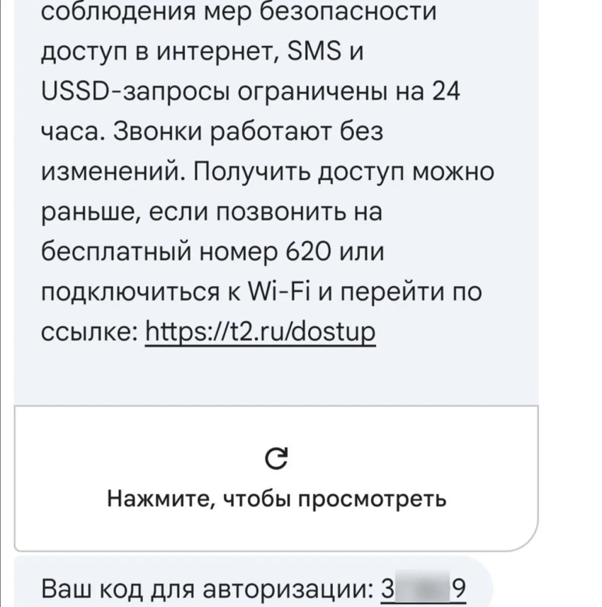 У второго представленного оператора - «интереснее». Чтобы пройти верификацию того, что вы «не верблюд», нужно ввести капчу, перейдя по ссылке. Но есть нюанс. В этом случае, наоборот, не должно быть подключения к Wi-Fi (причём обязательно и без VPN), а должна быть исключительно мобильная сеть. Но пользователи жалуются на то, что при попытке перейти по ссылке в рамках мобильной сети этого же оператора, перехода не происходит. А если происходит, то не всё так просто с той «капчой». В этом случае более надёжный вариант – звонок на короткий номер (указан оператором в СМС), либо (что уже странно само по себе) – подключение к мобильной сети через другую СИМ-карту (если телефон имеет несколько слотов и другая «симка» уже разблокирована). При вводе «капчи» или соединении с роботом по короткому номеру и подтверждении того, что вы это вы, произойдёт разблокировка пакета услуг до истечения 24-часового срока.