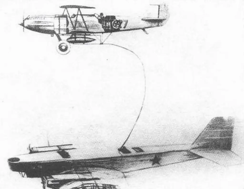 Аппетит приходит во время еды, так что неудивительно, что дальше захотелось увеличить радиус действия ТБ-1 до 1200 км. Так в СССР родилась идея дозаправки самолета в воздухе.