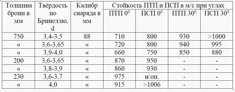 Однако, несмотря на отсутствие этих данных, косвенным путем, сопоставляя и анализируя трофейные и отечественные данные по одним и тем же калибрам снарядов и базируясь на результатах довольно многочисленных исследований немецкой брони, проведенных за период 2-й Отечественной войны, удалось примерно установить не только некоторые качественные характеристики немецкой брони, но также в какой-то степени оценить и достоверность трофейных немецких данных.