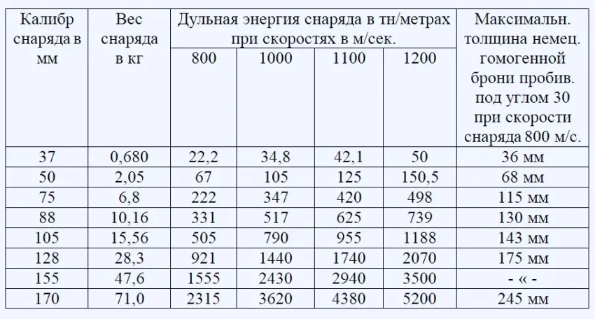 Таким образом, в результате увеличения начальных скоростей и калибров снарядов современная противотанковая и танковая артиллерия обладает исключительно высокой пробивной способностью.