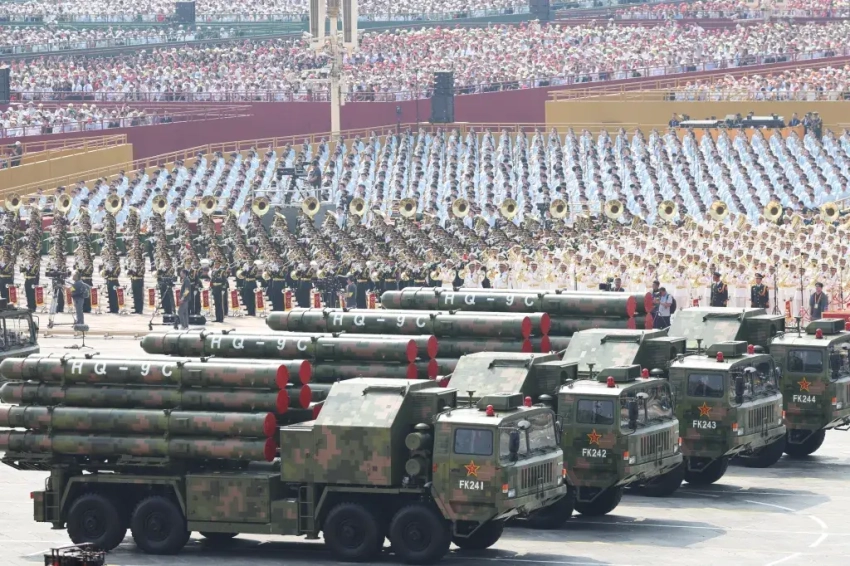 Зенитные ракетные комплексы HQ-9C на площади Тяньаньмэнь во время военного парада в честь 80-й годовщины победы в Войне сопротивления китайского народа против японской агрессии и во Второй мировой войне 3 сентября 2025 года в Пекине.