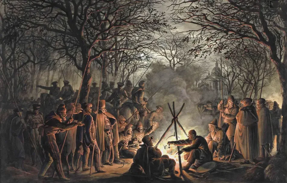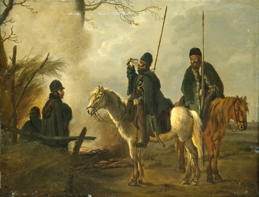 Привал казаков у ворот Амстердама в ночь на 24 ноября 1813 года. Работа Франсуа Жозефа Пфайффера