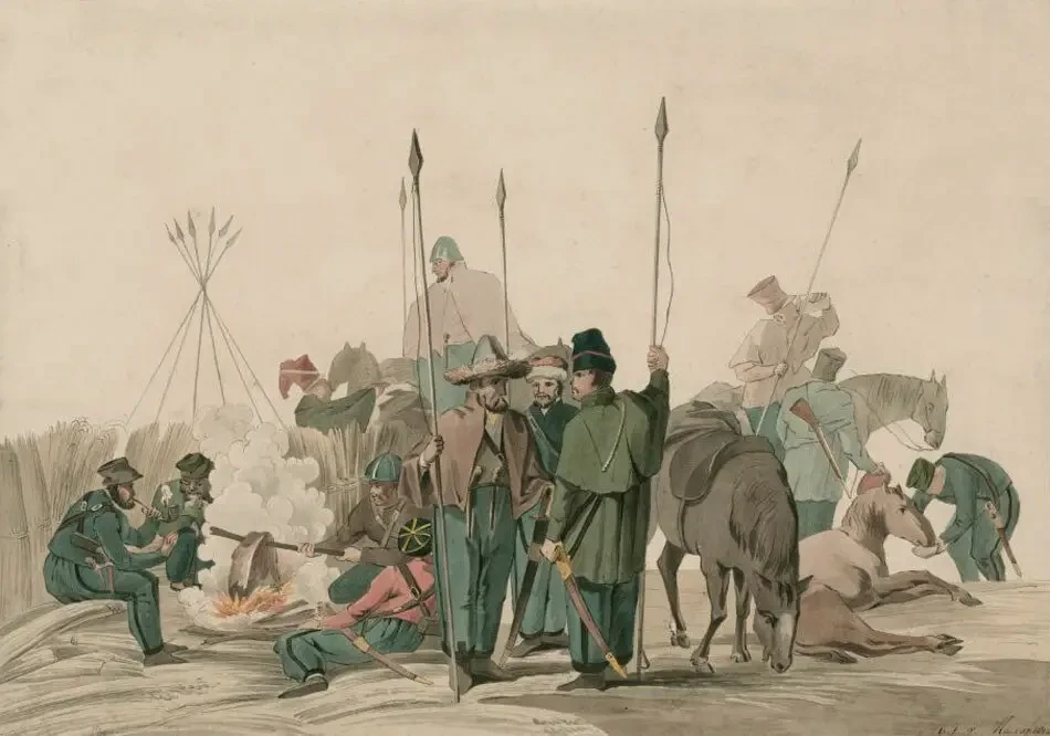 Казачий пост в Голландии, 1813 год. Художник Питер Герардус ван Ос