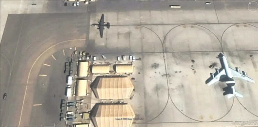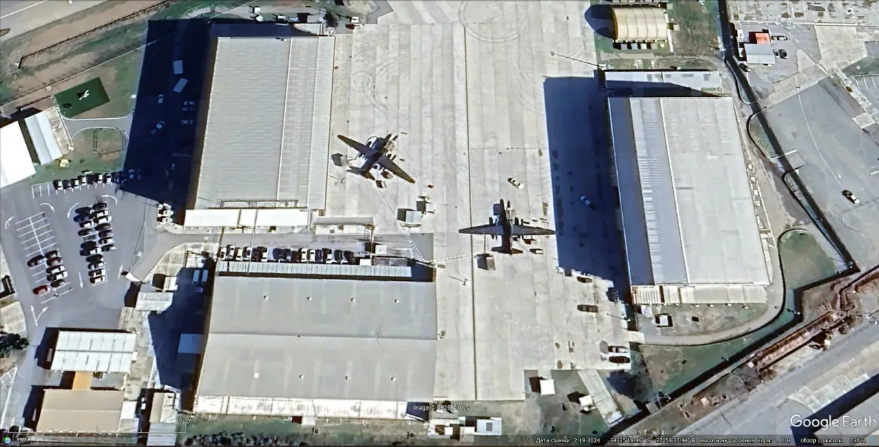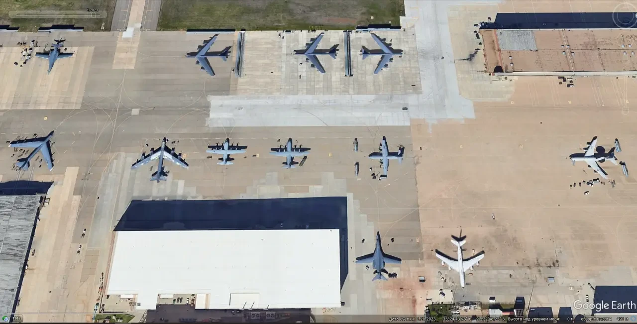 Спутниковый снимок Google Earth: самолёты Lockheed U-2S Dragon Lady на авиабазе Бил