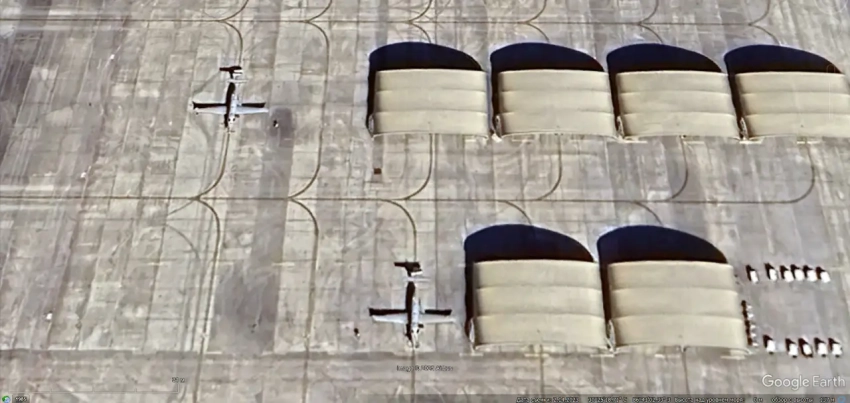 Спутниковый снимок Google Earth: самолёты Pilatus U-28A Draco на авиабазе Херлберт Филд. Снимок сделан в феврале 2023 года