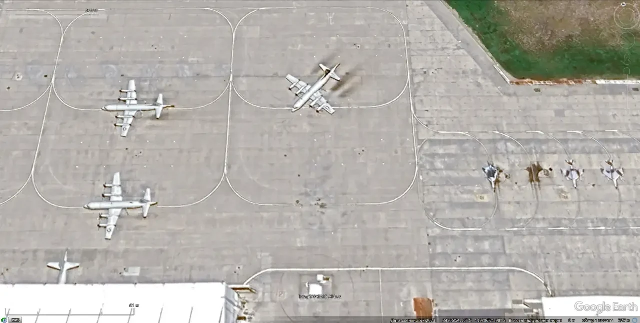 Спутниковый снимок Gооglе Eаrth: самолёты Boeing P-8А Poseidon на авиабазе Кадена. Снимок сделан в мае 2019 года