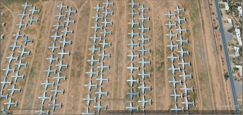 Спутниковый снимок Google Earth: самолёты Lockheed P-3 Orion на базе хранения Дэвис-Монтен