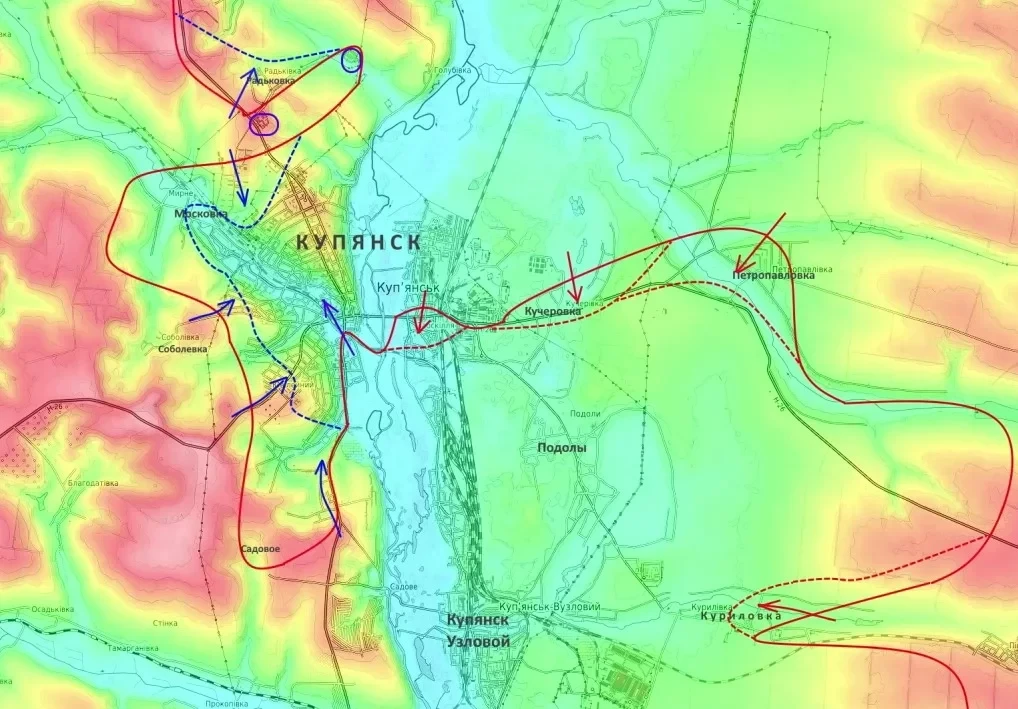 ВСУ пытаются через долину реки Оскол рассечь российскую группировку в городе пополам. Тем не менее, основные позиции удерживаются, параллельно идет дозачистка Петропавловки и Куриловки.