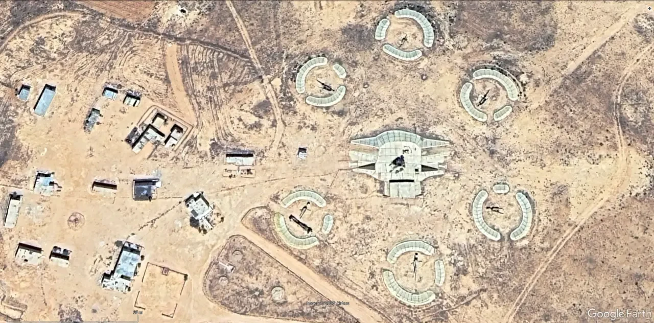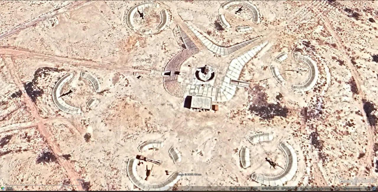 Спутниковый снимок Google Earth: позиция ЗРК С-75 в окрестностях авиабазы Сиди Баррани на юго-западе Египта. Снимок сделан в июне 2023 года