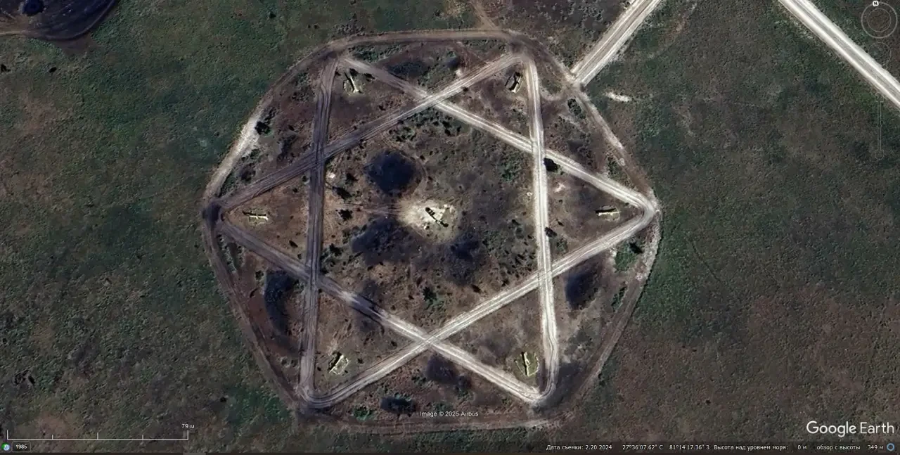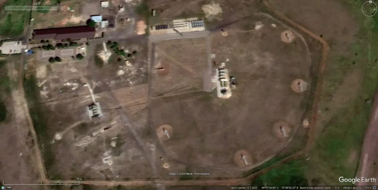 Спутниковый снимок Google Earth: позиция ЗРК С-75М3 под Карагандой. Снимок сделан в июне 2022 года