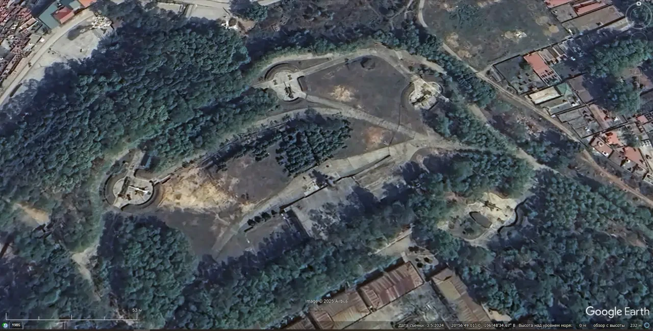 Спутниковый снимок Google Earth: позиция ЗРК С-75М3 в окрестностях Хайфона. Снимок сделан в марте 2024 года