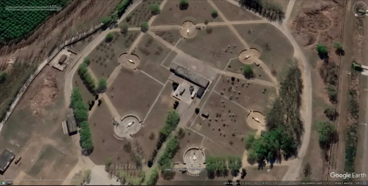 Спутниковый снимок Google Earth: позиция ЗРК НQ-2 на восточной окраине Пекина. Снимок сделан в апреле 2020 года