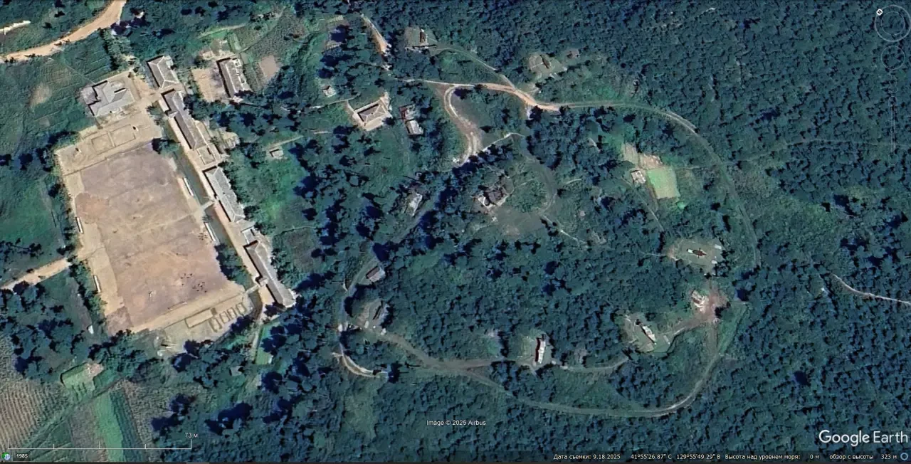 Спутниковый снимок Google Earth: позиция ЗРК С-75М3 или НQ-2 северней Чхонджина. Снимок сделан в сентябре 2025 года