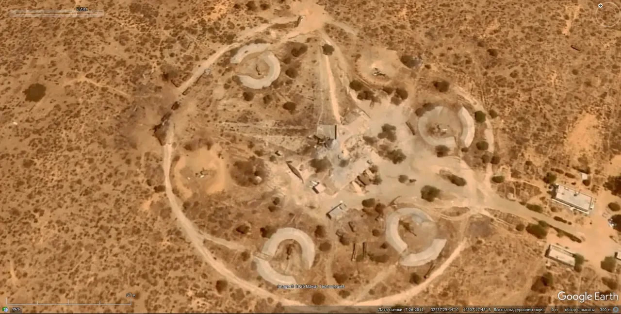 Спутниковый снимок Google Earth: позиция ЗРК С-75 южнее Триполи. Снимок сделан в октябре 2010 года