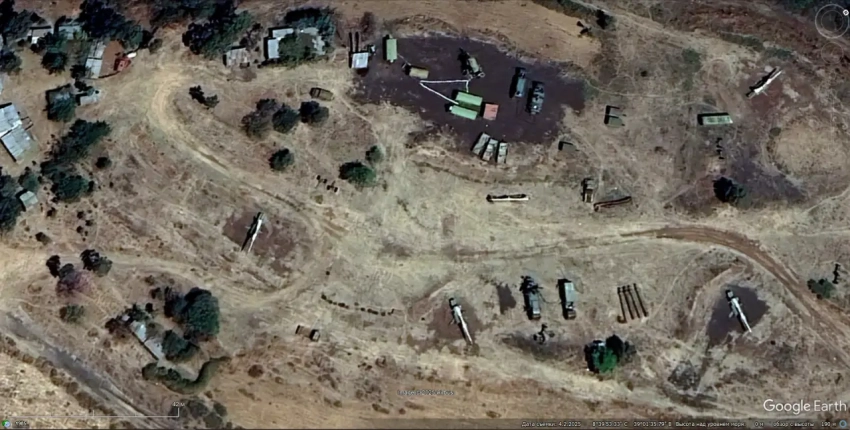 Спутниковый снимок Google Earth: полевая позиция ЗРК С-75М3 в 25 км юго-восточней Аддис-Абебы. На позиции развернуто только четыре пусковые установки. Снимок сделан в апреле 2025 года