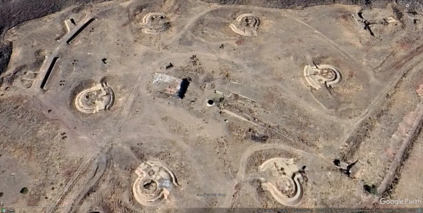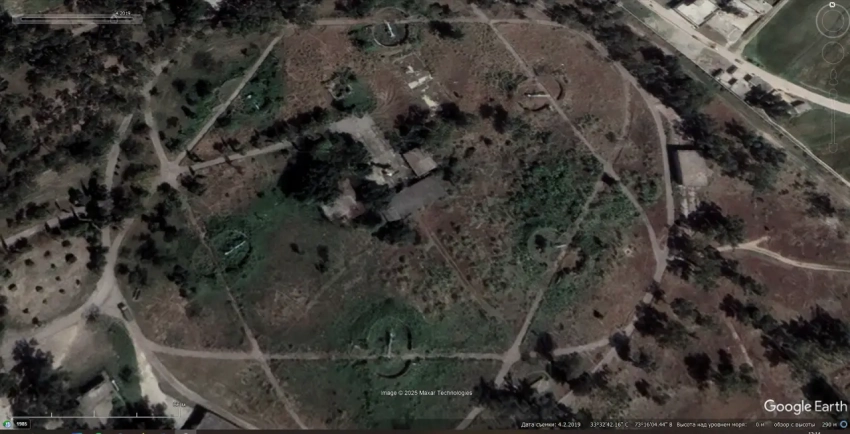 Спутниковый снимок Google Earth: эта же самая позиция ЗРК С-75М3 в окрестностях Саны. В местах, где раньше находились пусковые установки и станция наведения, видны следы взрывов и пожаров. Снимок сделан в январе 2025 года