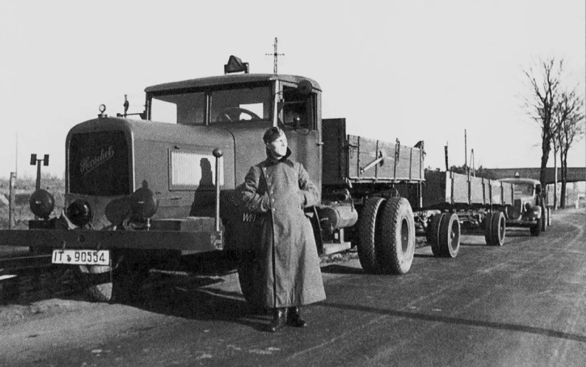 На снимке изображён один из стандартных лёгких полноприводных грузовиков ремонтного подразделения, известный как Einheits-Lkw (единый грузовой автомобиль) или Einheits-Diesel. Это унифицированная модель грузовика грузоподъёмностью 2,5-3 тонны, разработанная в конце 1930-х годов для ремонтных нужд. Машины производили MAN, Magirus, Bussing-NAG, Mercedes-Benz и другие