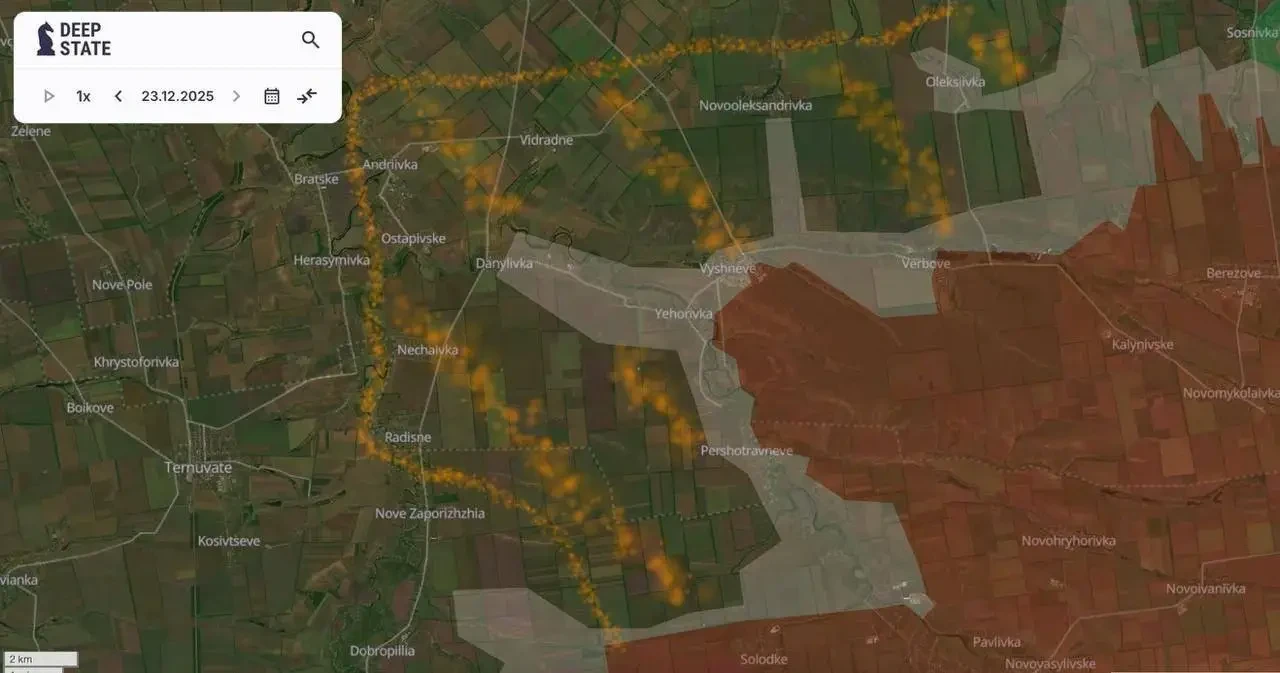 В качестве примера немецкий эксперт обращает внимание на село Радостное в Днепропетровской области, которое еще в 20-х числах ноября перешло под полный контроль российских войск, тогда как у Deep State оно находится в тылу украинских формирований. По его словам, это дает искаженную картину происходящего на фронте, многие эксперты на Украине и на Западе используют эти карты для собственной аналитики.