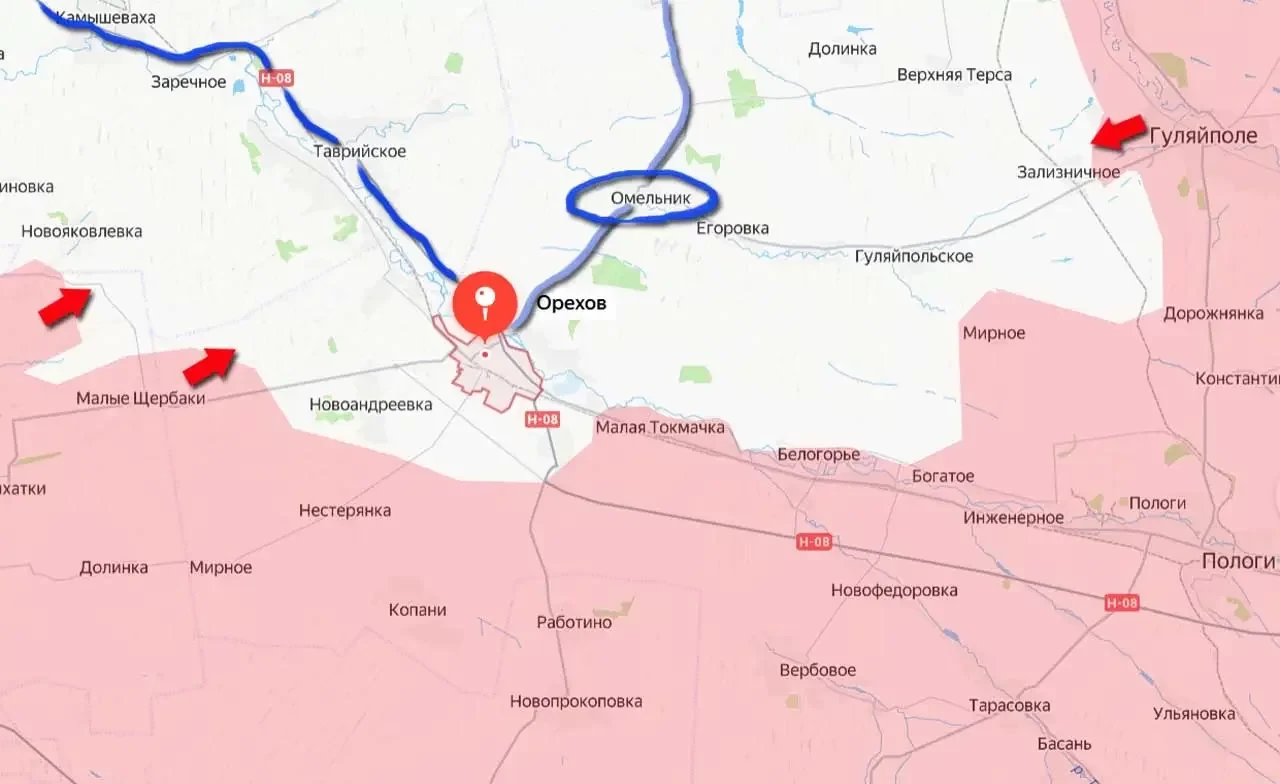 Наибольшей уязвимостью для противника в Орехове является автомобильная дорога Н-08, которая соединяет его с Запорожьем. Если российским войскам в ближайшие недели удастся прорваться к этой дороге со стороны Малых Щербаков или из района Павловки, то основной маршрут снабжения ВСУ в Орехове будет заблокирован. А в случае дальнейшего продвижения освобождённого Гуляйполя на запад, в сторону села Омельник, будет перерезана и последняя автодорога, связывающая вражеский гарнизон с «основными силами».