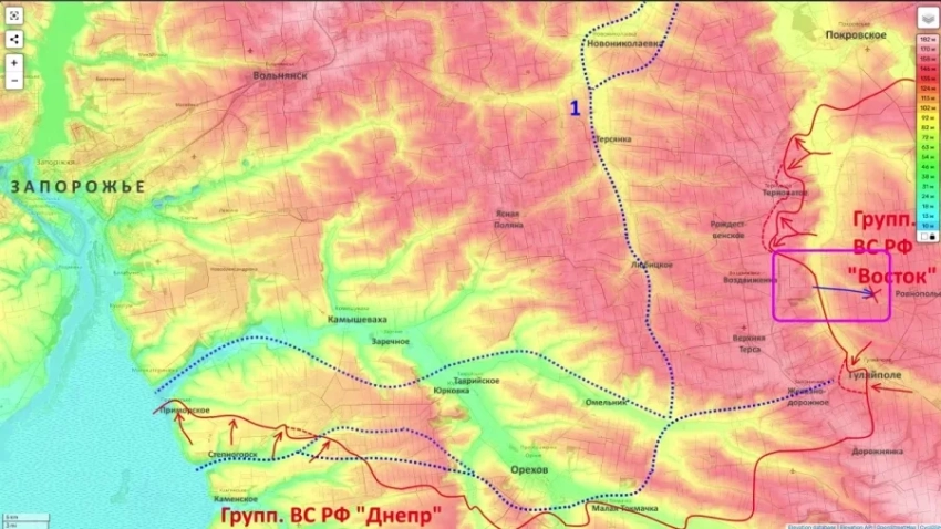 Продвижение идёт и в Запорожской области. Там российская армия расширяет зону контроля в районе Малокатериновского лимана в Приморском. Речь идёт о южном береге реки Конка на месте её впадения в Днепр (Каховское водохранилище).