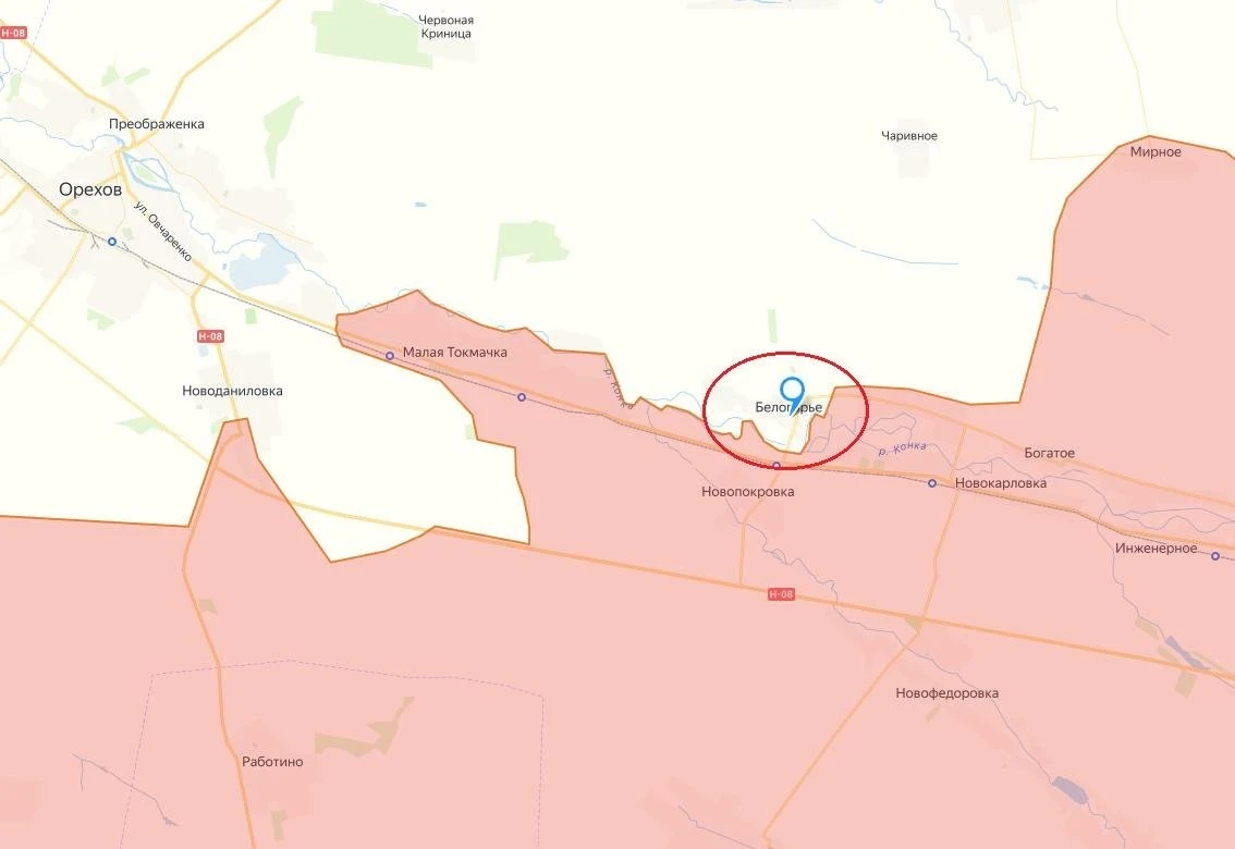 В это же время на Ореховском участке Запорожского фронта зафиксирован серьезный успех: российские войска прорвали оборону, ворвались в Белогорье и заняли его центральную часть. По другим данным, которые сообщил военный обозреватель Юрий Подоляка, населенный пункт зачистили уже полностью. Украинские аналитики утверждают, что площадь продвижения составила 1,05 квадратных километра.