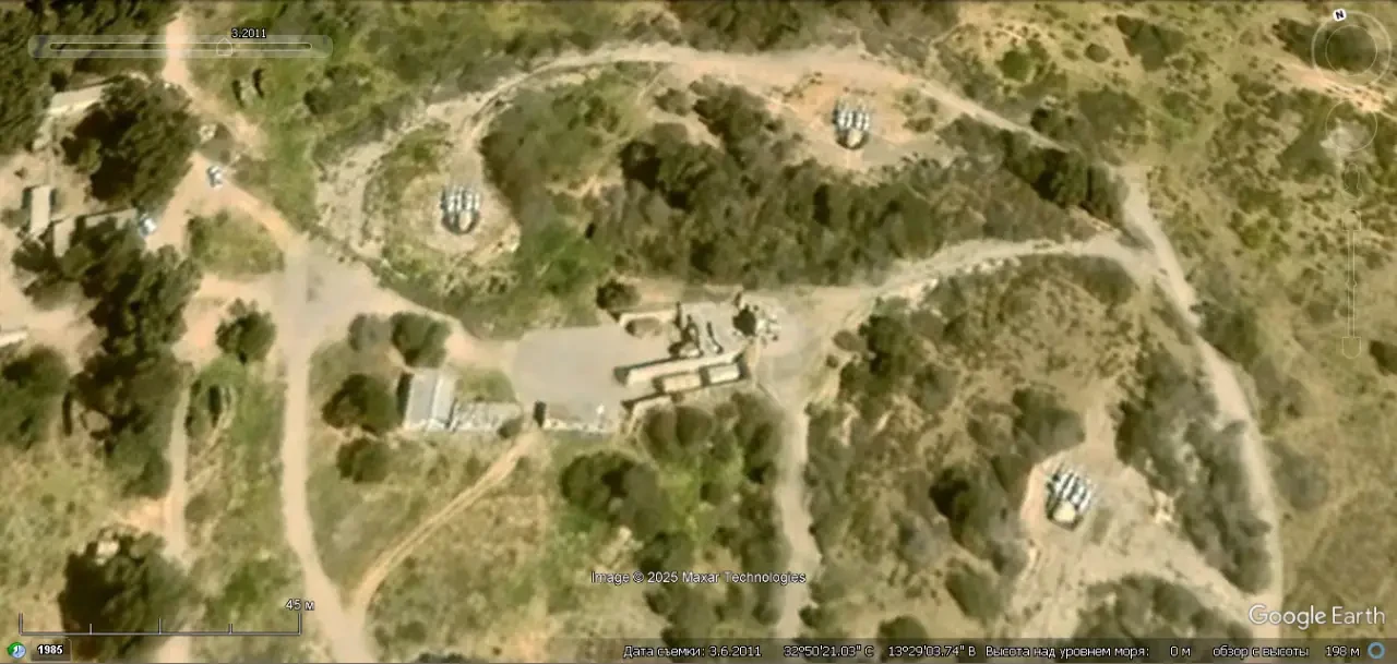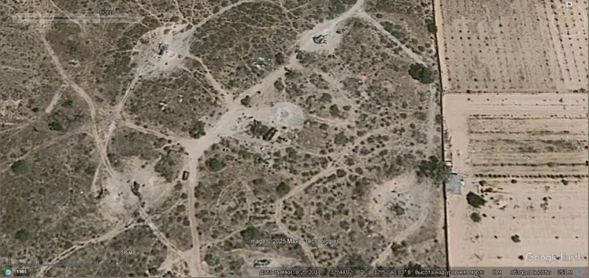 Спутниковый снимок Googlе Eаrth: позиция ЗРК С-125-2М «Печёра-2М» в 3 км западней города Исмаилия. Снимок сделан в июне 2025 года
