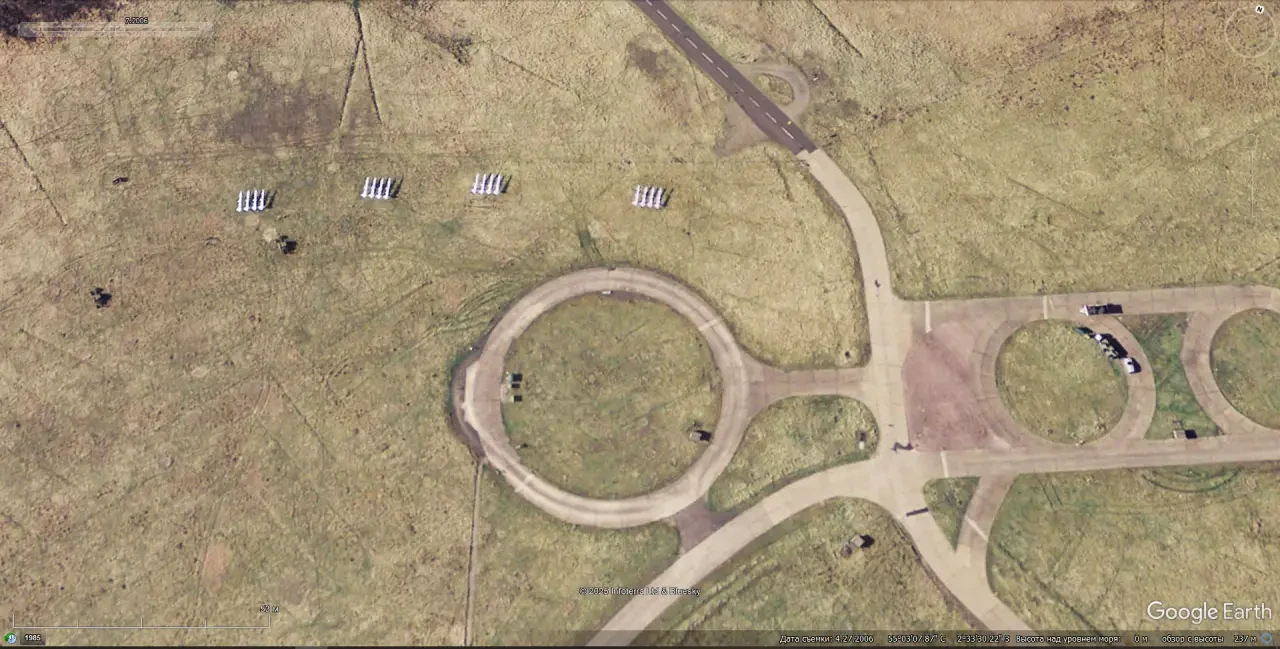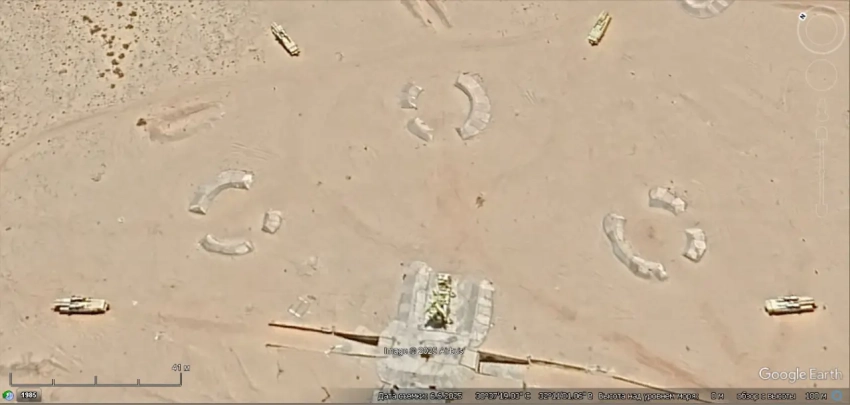 Спутниковый снимок Googlе Eаrth: макеты пусковых установок ЗРК С-125 на полигоне Спейдадам