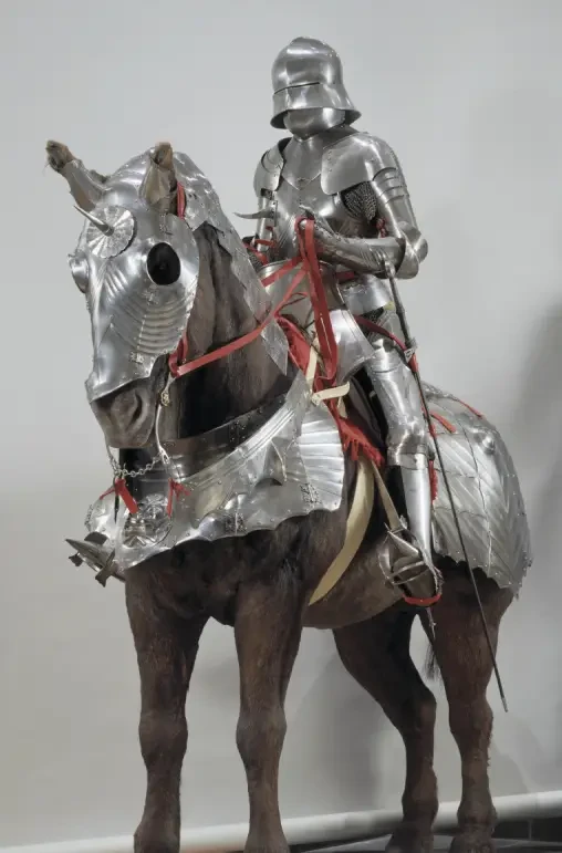 Такие доспехи защищали от меча и копья, а иногда даже от стрелы арбалета и пули аркебузы. Вот только этого рыцарская конница от этого подвижнее не стала. Копье все также оставалось главным наступательным оружием всадника. А его вес, ставший непомерным, побудил с середины XV века укладывать его древко на специальный опорный крюк, располагавшийся на правой стороне латного нагрудника. В XIII веке родилась странная мода подвешивать меч, кинжал, а также горшковидный шлем к кольчуге на цепочках, чтобы они не потерялись в пылу сражения. Но цепочки эти легко перепутывались, тем более что иной раз их было целых четыре штуки, поэтому в начале XV века эти цепочки исчезли.