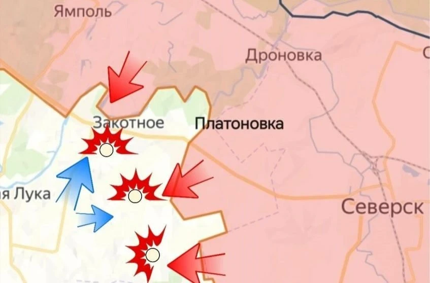 На северном участке, в районе населённого пункта Ильичёвка, успешно ликвидирован ранее образовавшийся карман. Противник выбит из опорных пунктов, что позволило стабилизировать линию фронта. Активная фаза боёв сейчас сместилась в район Закотного, где идёт борьба за господствующие высоты. Данные позиции имеют критически важное значение, так как позволяют контролировать подступы к Северску с севера и простреливать украинские тыловые пути.
