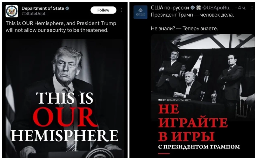Кроме этого, госдепартамент опубликовал на своих аккаунтах в соцсетях пост на разных языках, в том числе и на русском, с призывом «не играть в игры с президентом Трампом».