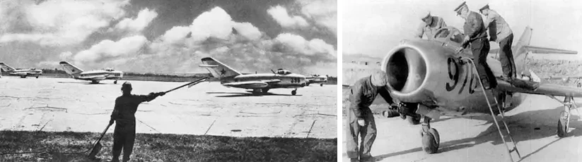 И когда речь заходит о воздушных сражениях в Корейской войне 1950-х годов, всегда следует помнить, что успех советских МиГ-15 был обусловлен сочетанием новой технологии стреловидных крыльев с полностью разработанным, но на тот момент еще далеким от передовых технологий, реактивным двигателем, разработанным на базе британского Rolls-Royce Nene.
