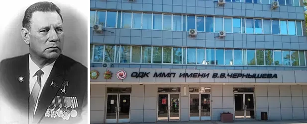 На фото слева: Владимир Васильевич Чернышёв (1906–1983). В 1945-1947 годах занимал должность главного инженера московского моторостроительного завода № 500. Под его руководством при полном отсутствии техдокументации всего за семь месяцев было налажено серийное производство двигателей Derwent, вошедших в серию под именем РД-500, для самолётов Ла-15 и Як-23. На фото справа: моторостроительный завод № 500 (ныне «Московское машиностроительное предприятие имени В. В. Чернышёва»). На сегодняшний день входит в Объединённую двигателестроительную корпорацию (ОДК) Госкорпорации «Ростех»