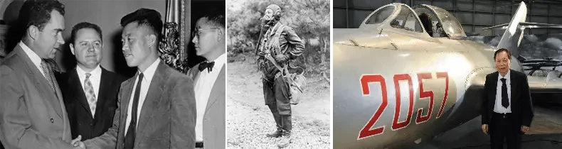 На фото слева: президент США Р. Никсон и летчик Но Кум-Сок. На фото в центре: летчик Но Кум-Сок (1932–2022). На фото справа: летчик Но Кум-Сок, взявший себе в США имя Кеннет Роу, рядом с угнанным им МиГ-15 в Национальном музее ВВС в Дейтоне, штат Огайо. 2015 год