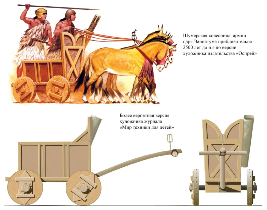Современная реконструкция шумерской колесницы. Рис. А Шепса