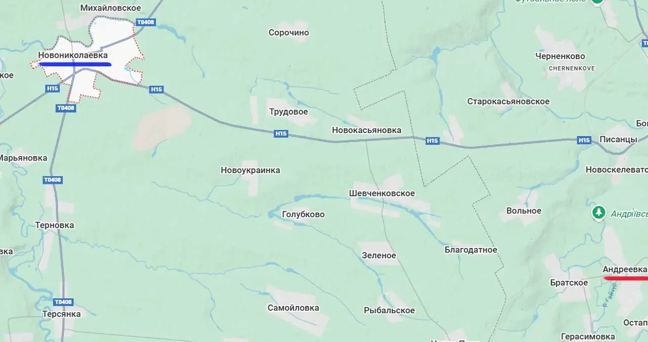 Продвижение к западу от Андреевки приближает армию Россию к стратегическому транспортному узлу северо-востока Запорожской области - пгт Новониколаевка. В нём сходятся автодороги Н15 Запорожье-Донецк и Т0408 Павлоград-Токмак. Потеря контроля ВСУ над этим транспортным узлом скомкает всю его логистику на севере Запорожской и на востоке Днепропетровской областей.