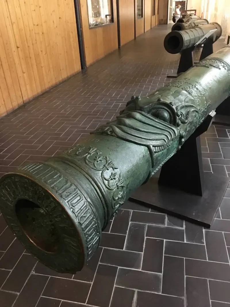 Литое чугунное орудие с оригинальным литым рельефом на поверхности ствола. Музей Армии, Париж. Фотография автора