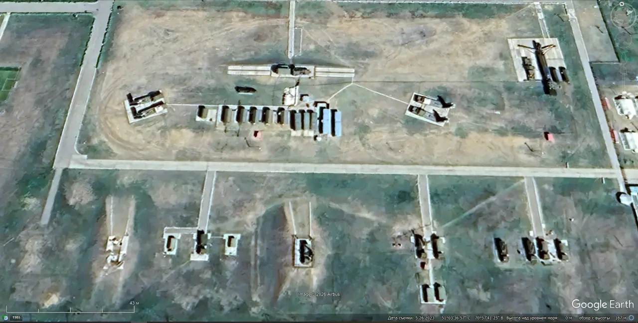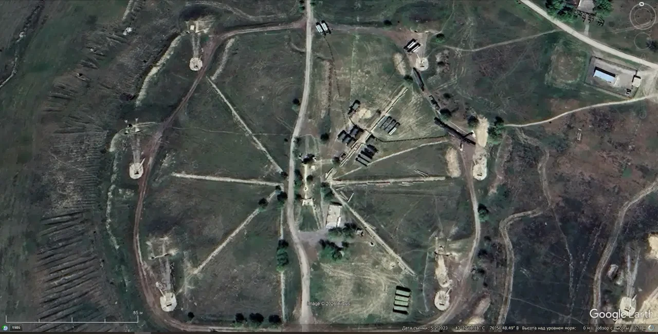 Спутниковый снимок Googlе Еarth: позиция ЗРС С-300ПС под Карагандой. Снимок сделан в мае 2025 года