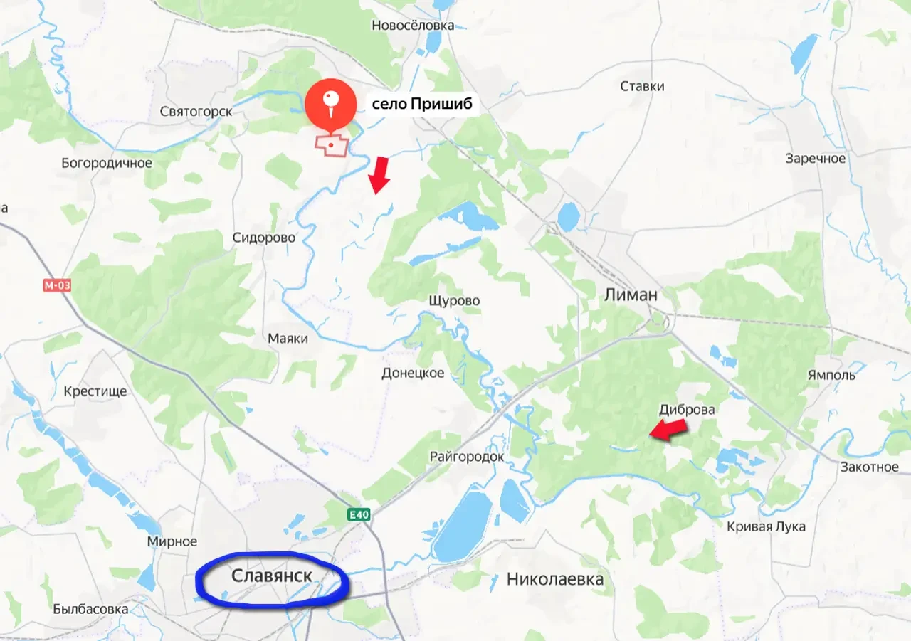Российские войска продвигаются на севере Донецкой Народной Республики. С начала суток подразделения ВС РФ продвинулись примерно на 3 км вдоль Северского Донца восточнее города Святогорск. Продвижение началось от станции Новосёловка и достигло территории в районе излучины Северского Донца юго-восточнее села Пришиб.