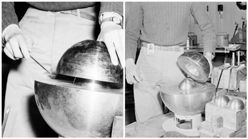 Из XXI века уровень безопасности в Лос-Аламосе поражает. Опаснейшие опыты с начинкой ядерной бомбы проводили голыми руками и без элементарных средств защиты. И это отлично понимали сами исследователи – подобные эксперименты они называли «щекотанием хвоста дракона». Злотин проводил крайне рискованные манипуляции. Что он сделал? Физик практически полностью сомкнул две полусферы из бериллия над «зарядом-демоном». То есть почти все нейтроны из сборки отражались, и лишь небольшая их часть вырывалась наружу через щелку, оставленную Злотиным. Угадайте, чем он удерживал полусферы от схлопывания?