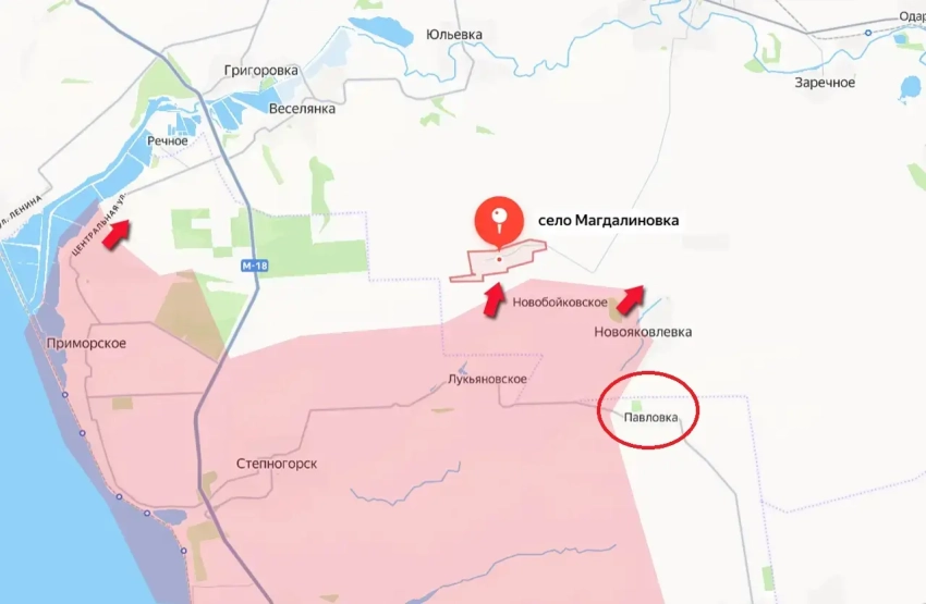 Подразделения армии России полностью выбили противника из села Павловка, расположенного к северо-востоку от недавно освобожденного города Степногорск. Село Павловка находится в Васильевском районе Запорожской области Украины, примерно в 30 километрах к северо-западу от города Васильевка и в 60–70 километрах к северо-западу от оккупированного ВСУ областного центра. Освобождение Павловки имеет важное значение, поскольку расстояние от этого населенного пункта до важной для снабжения украинского гарнизона в Орехове автодороги не превышает 15 километров. Параллельно автодороге через село Юрковка также проходят железнодорожные пути.